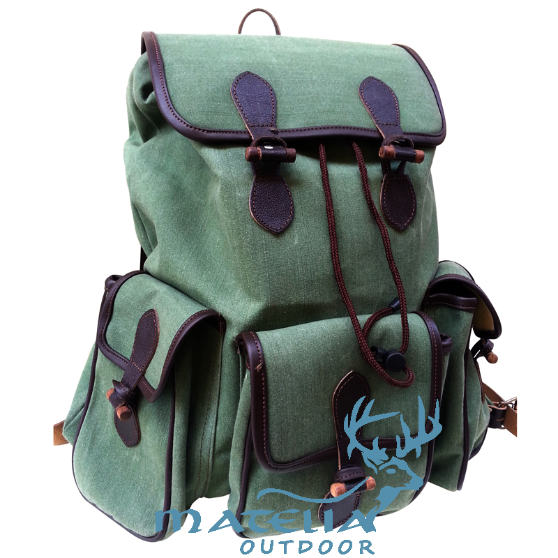 Canvas Rucksack Bag: This beautiful bag is made of fine quality Green color canvas, top grain cowhide leather and solid brass buckles. Leather shoulder straps.